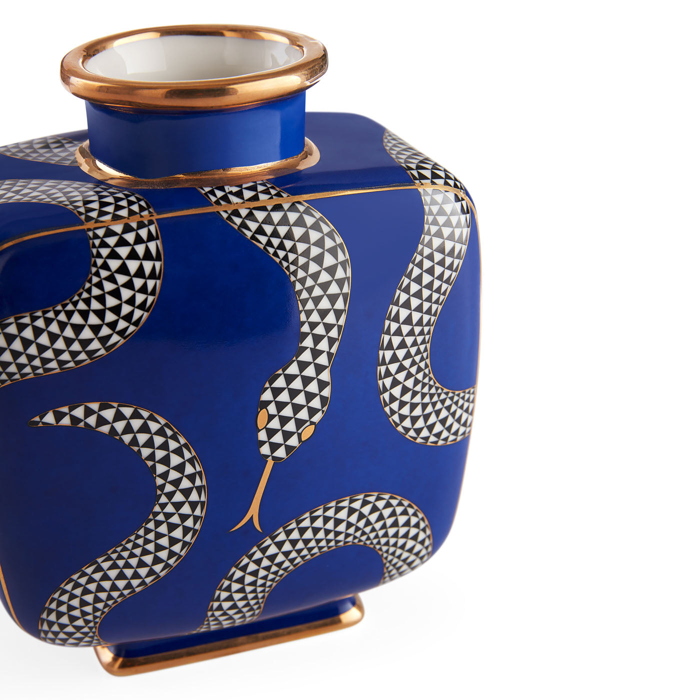 A striking addition to any table, shelf, or mantel, our Eden vases feature our signature slithering serpents on punchy pop-toned hues. Sparkling gold accents add an air of daring and glamour. Eden’s classic silhouettes mix well with others, or style the collection together for extra bite.