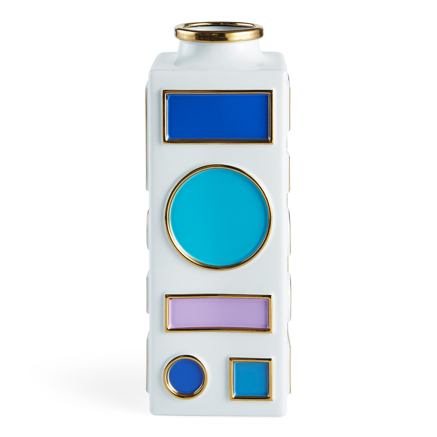 Fresh colors, a nod to Milanese modernism, and, always, a pop of POP! Our Emilio vases, crafted from glossy white porcelain with bold jewel tones motifs framed by gleaming gold edges, are just what your tablescape or mantelscape are begging for. Available in two sizes for styling together.