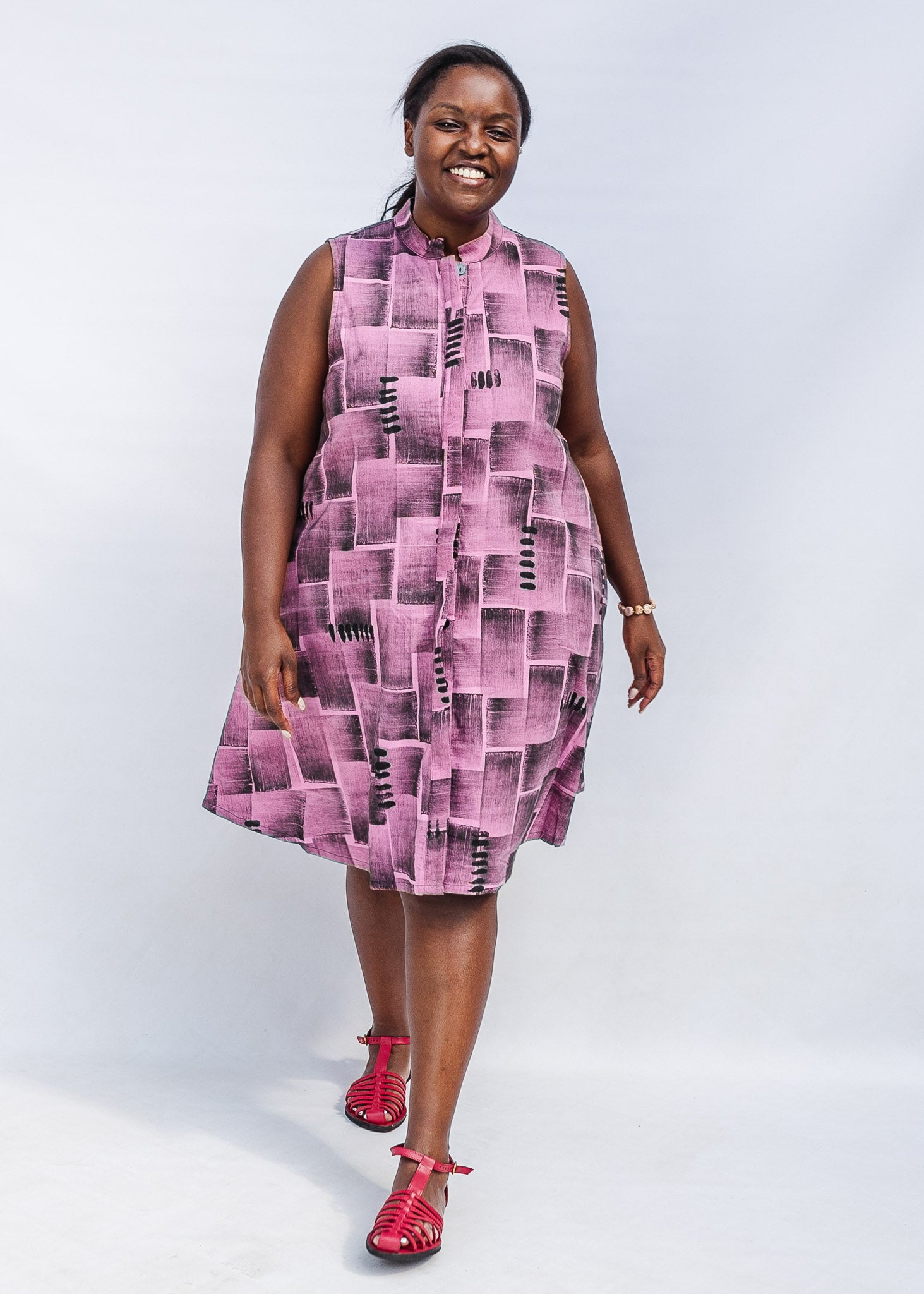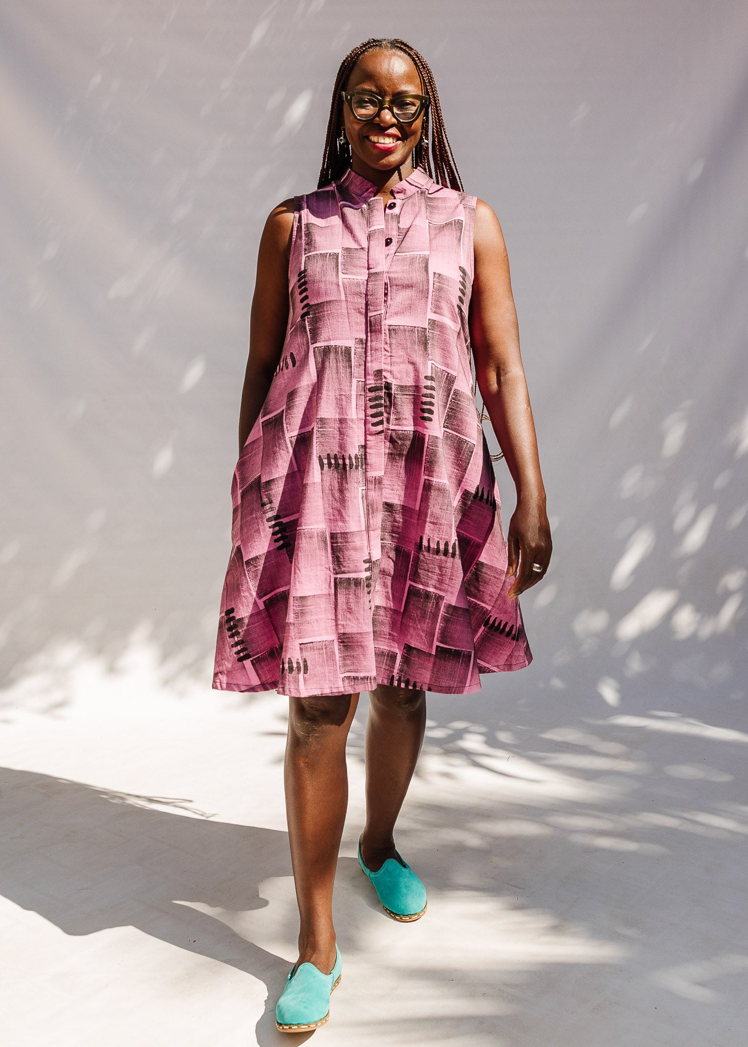Step into sync in this fabulous hand-blocked cotton dress!
